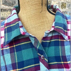 Natural Reflections brings us this super soft, thicker button down flannel shirt, perfect for Fall. It has a front pocket and button cuffs and will layer or work well alone. This shirt clearly hasn't been worn much and is in like-new condition. Classic plaid that’s multicolored. Size 2X
