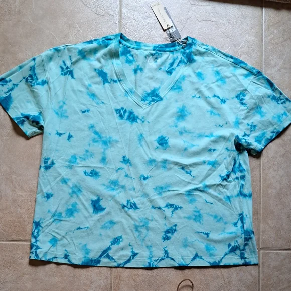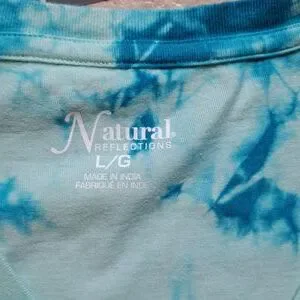 Size Large.Tie Dye.Short Sleeve Tee Shirt.Mint Seafoam/Blue.Zoom in on measures.