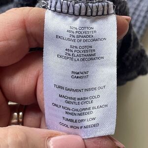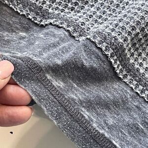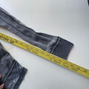 Great rustic factory distressed look. Waffle weave, scoop neck, banded sleeves and bottom edge and exposed seams.