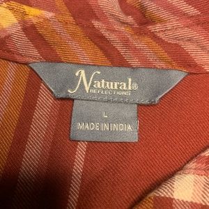 Natural Reflections Boho Western Embroidery Button Down Plaid Shirt L