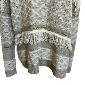 Natural Reflections Cardigan Women's Size XL Beige Neutral Fringe Boho Patterned Coastal