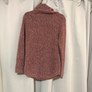 Natural Reflections Cowl Neck Sweater - A soft nubby knit sweater made from recycled materials, featuring specks of color throughout the fabric. Also features a ribbed collar, cuff and hem. Color is called “red clay”