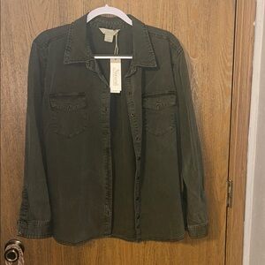 Natural Reflections Dark Olive Denim Button Down Shirt NWT