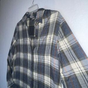 Women's Natural Reflections Flannel Shirt Dress in navy, green, and white plaid. Button up. In a cotton and rayon blend. In great pre-owned condition.