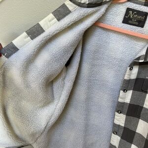 Natural Reflections Gray White Plaid Flannel Shacket Shirt Jacket Sherpa Lined