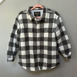 Natural Reflections Gray White Plaid Flannel Shacket Shirt Jacket Sherpa Lined S