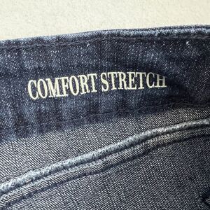 Natural Reflections Comfort Stretch Classic Fit Jeans in a dark wash with light distressing on pockets and straight leg.