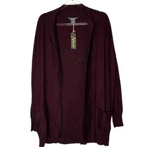 Natural Reflections Knit Open Front Cardigan Burgundy Medium NWT