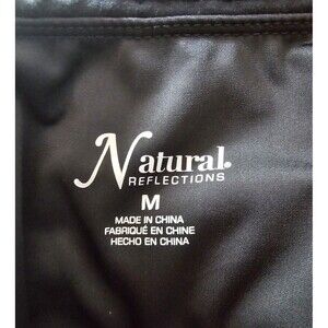 Elevate your wardrobe with these Natural Reflections leggings. The black knit fabric reflects a solid pattern and is made of a cotton blend material, as depicted in the pictured tag. These leggings are ankle-length and designed for regular size women. The fabric type is knit, and the style is comfortable and versatile. Perfect for any occasion, these leggings are a must-have addition to your collection.
