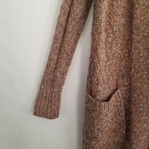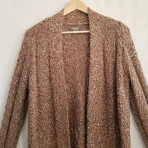 Natural Reflections Long Line Cardigan Sweater Medium Wool Blend Gray Brown