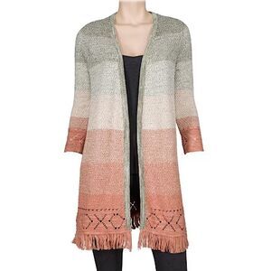 The Natural Reflections Twisted Yarn Long Cardigan for women adds beautifully striped ombre color to elevate leggings or jeans.