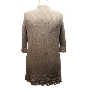 Natural Reflections Open Knit Cardigan Size XL Oatmeal Fringe Cabin Style Y2K