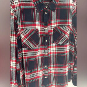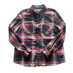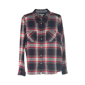 Natural Reflections Plaid Long Sleeve Button Down Red White Green Navy Blue Flannel Shirt Women’s Large