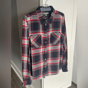 Natural Reflections Plaid Long Sleeve Button Down Red White Green Navy Blue Flannel Shirt Women’s Large