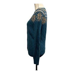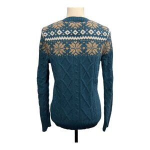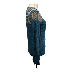 Natural Reflections S Wool Blend Fair Isle Cardigan Sweater Button Cable Knit