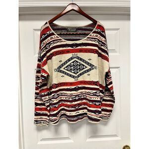 Natural Reflections Southwestern Boho Blanket Print Scoop Neck Sweater sz 2X EUC