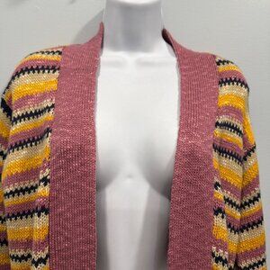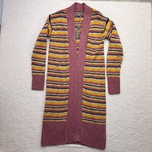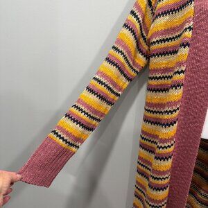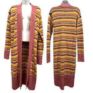 Description: Natural Reflections Striped Open Long Knit Cardigan Duster Beachy Pink Boho NEW