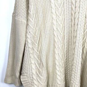 This lovely ivory/cream/oatmeal colored cable knit sweater is like new. No apparent flaws. It is soft and lightweight. Color may vary due to lighting. It is a very nice hue. I'm happy to answer any questions. Smoke free home. I Ship Quickly & Carefully. Thank you for shopping with me!