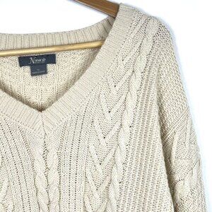 Women's Natural Reflections Oatmeal Heather Cable Knit V-neck Fishermans Sweater Size XL