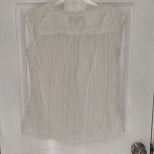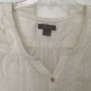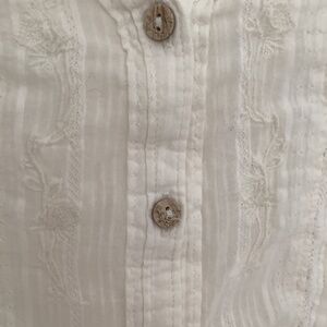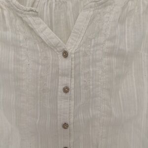 Natural Reflections White Embroidered Cap Sleeve Button Down Shirt S PRE-OWNED