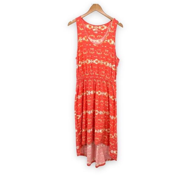 Natural Reflections orange scoop neck high low hem ikat sleeveless dress large
