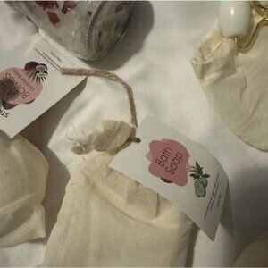 Pure Essence / Natural Relaxation Gifts • Style: Spa Gift Set / Self Care Kit • Color: Neutral Pink & Ivory Tones • Includes: Lavender essential oil (50ml), bath bombs, bath salts in glass jar, knitted spa towel/socks, reusable muslin bag, decorative sunflower piece, mystery gift box (likely candle or soap) • Condition: New in box • Features: Aromatherapy, stress relief, moisturizing, relaxing home spa experience • Perfect For: Gifts, self-care nights, holidays, birthdays, thank-you gestures Styling Tip Ponlo junto a una vela suave y música relax para crear tu propio mini-spa en casa. Keywords / Tags Self Care, Spa Box, Relaxation Gift, Aromatherapy, Lavender, Coconut Bath Bomb, Cozy Gift Set, Wellness, Stress Relief, Holiday Gift, Minimalist, Quiet Luxury, Soft Aesthetic, Cozy Traditional, Garden Girl, Clean Girl, Minimalist Aesthetic, CabinCore, Cottagecore