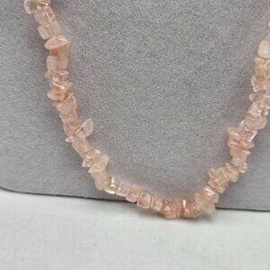 Natural Rose Quartz Chip Bead Necklace 32" With Decorative Metal Clasp