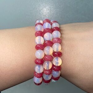 Natural Rose Red Jaspers Rondelle Spacer Beads & Opal 8 mm Stackable quarts