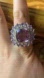 This massive cocktail ring features real, earth mined Rose de France amethyst and white zircon. The total gemstone carat weight on this ring is 13.25. The ring is large, having a face length measurement of over an inch. The center amethyst is cushion cut and measures 14x14mm. The ring is set in solid .925 sterling silver with a rhodium plate to prevent tarnishing. The ring in the photos is the actual one you will receive, so please see photos for quality and measurements. If you are looking for a statement piece, this ring is perfect. Size 9.