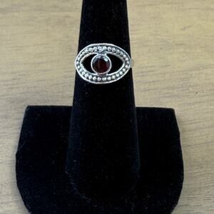 Natural Round .85 ct Garnet Evil Ring Sz 6