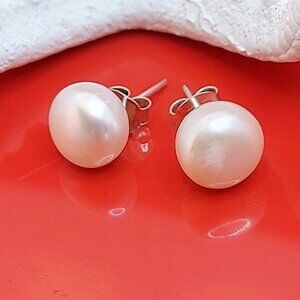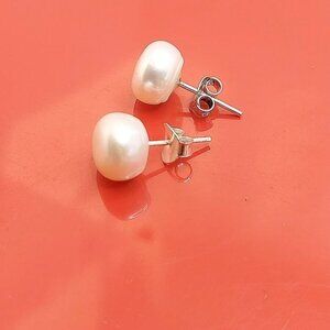 Natural Round Creamy White Pearl 9mm 925 Sterling Silver Earrings