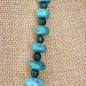 Pre-owned and in very good condition! Natural stones with a 14KT G.P springring closure. Stones were tested using a Presidium Gem Tester II and came up as tourmaline (the larger, lighter stones) and jadeite (the smaller green spacer stones). Measures 24" long. Springring is stamped 1/20th 14KT G.P. Beautiful condition with lots of natural markings within the stones.