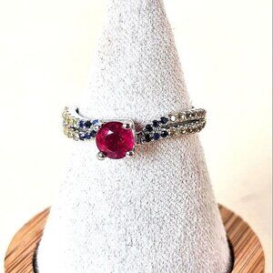 Natural Ruby & Multi-color Sapphire 925 Sterling Silver Ring Sz 5.75
