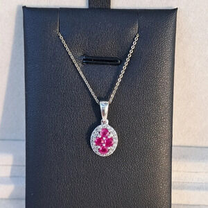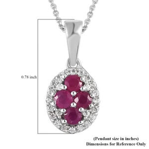 Premium Natural Ruby & Natural White Zircon Pendant Necklace 20" In Platinum Over 925 Sterling Silver.