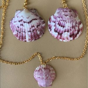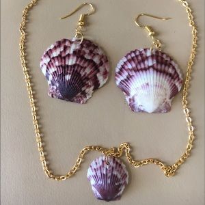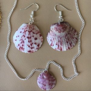 Natural Sea Scallop Shell Necklace & Earrings Set