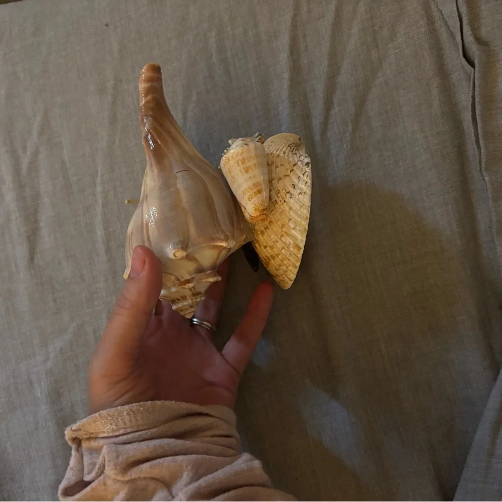 Beautiful sea shell candle. Perfect for decor. Features shades of cream and tan.