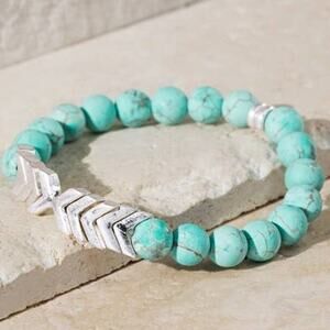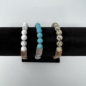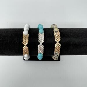 Natural Semi Precious Stone Chevron Pendant Stretch Set Of 3 Bracelet Jewelry