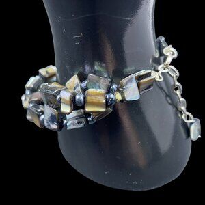 Bring an earthy, ocean-inspired touch to your look with this Natural Shell Beaded Bracelet, crafted with lustrous square and nugget shell beads in mixed tones of silver, taupe, and bronze. The iridescent shimmer gives it a natural elegance, perfect for everyday wear or coastal-inspired outfits.