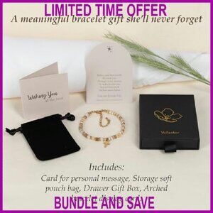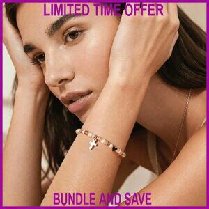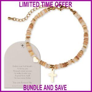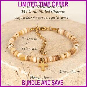 Brand new, never worn, and in flawless condition — this natural shell beaded bracelet combines beach-inspired elegance with meaningful 14k gold plated charms for a delicate and spiritual accessory perfect for everyday wear or special occasions.