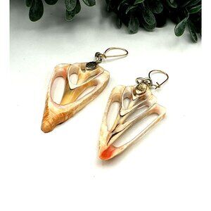 Natural Shell Carved Dangle Earrings With Gold tone Hooks