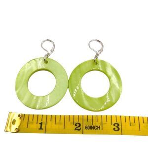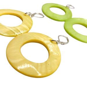 Natural Shell jewelry Women’s female set of 2 yellow and green open disk natural dyed shell with silver tone lever back dangle earrings. New with tags See pictures for measurements.
