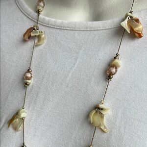 Gold-tone chain featuring cream and tan shell pieces 30" length