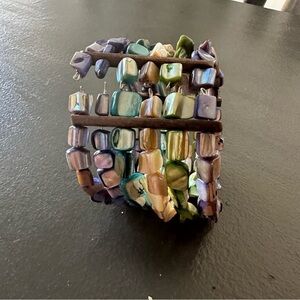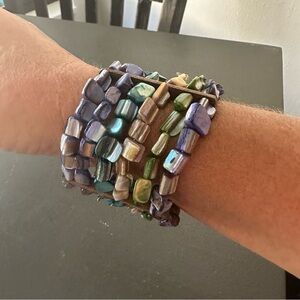 Natural Shell Vintage Abalone Rainbow Boho Cuff Bracelet Thick Band Hippie 6 Layered