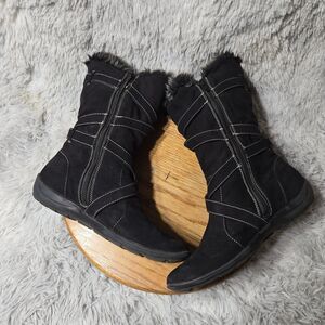 Natural Soul By Naturalizer Fasano Womens 8.5M Mid Calf Winter Black Suede Boots