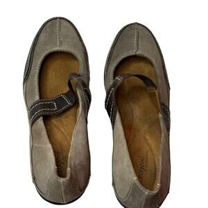 Natural Soul By Naturalizer Taupe Suede Leather Mary Jane Shoes Size 9 M Wedge