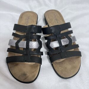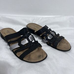 Natural Soul Comfort Sandals Women’s 8 M Joliet Black Silver Slip On Strappy