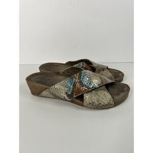 Natural Soul Naturalizer Kyra Wedge Slip on Sandals Criss Cross Snakeskin Print
