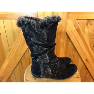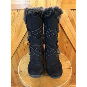 Natural Soul by Naturalizer Boots Womens 8 M Shearling Black Fabric Faux Fur