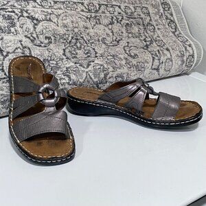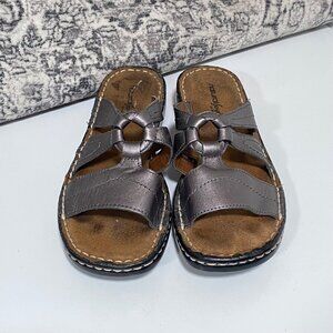 Natural Soul by Neutralizer Leather Strappy Sandals in Metallic Pewter