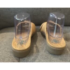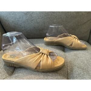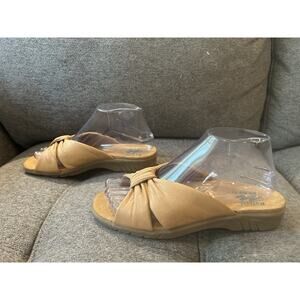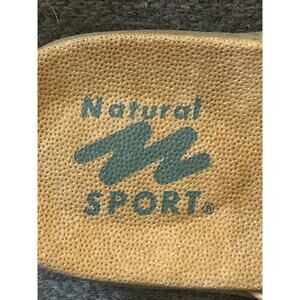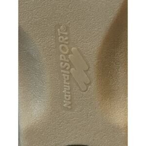 The Natural Sport sandals in size 7.5 W are stylish and comfortable slide sandals perfect for casual occasions. Made of leather with a solid beige color, these sandals are designed for women who appreciate quality craftsmanship. The Italian-made shoes are adorned with a simple yet elegant design that is sure to complement any outfit effortlessly. With a wide width for added comfort, these sandals by Natural Sport are a versatile and timeless addition to any wardrobe for women who value both style and functionality.